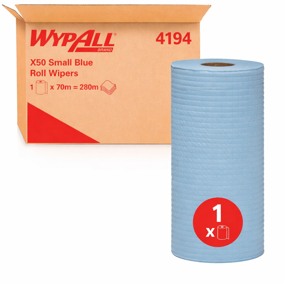 • WYPALL X50 small blue roll wipers contains 1 roll, each roll measuring 24.5cm x 70m