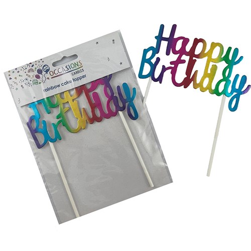 Alpen Occasions Happy Birthday Cake Topper 100W x 135mmH Metallic Rainbow