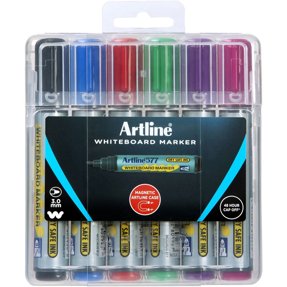 Artline 577 Whiteboard Markers Bullet 3mm Assorted Colours Hard Case Pack Of 6