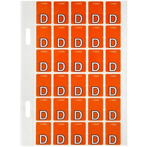 Avery Alphabet Coding Label D Top Tab 20x30mm Dark Orange Pack Of 150