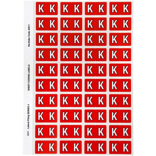 Avery Alphabet Coding Label K Side Tab 25x42mm Red Pack Of 240