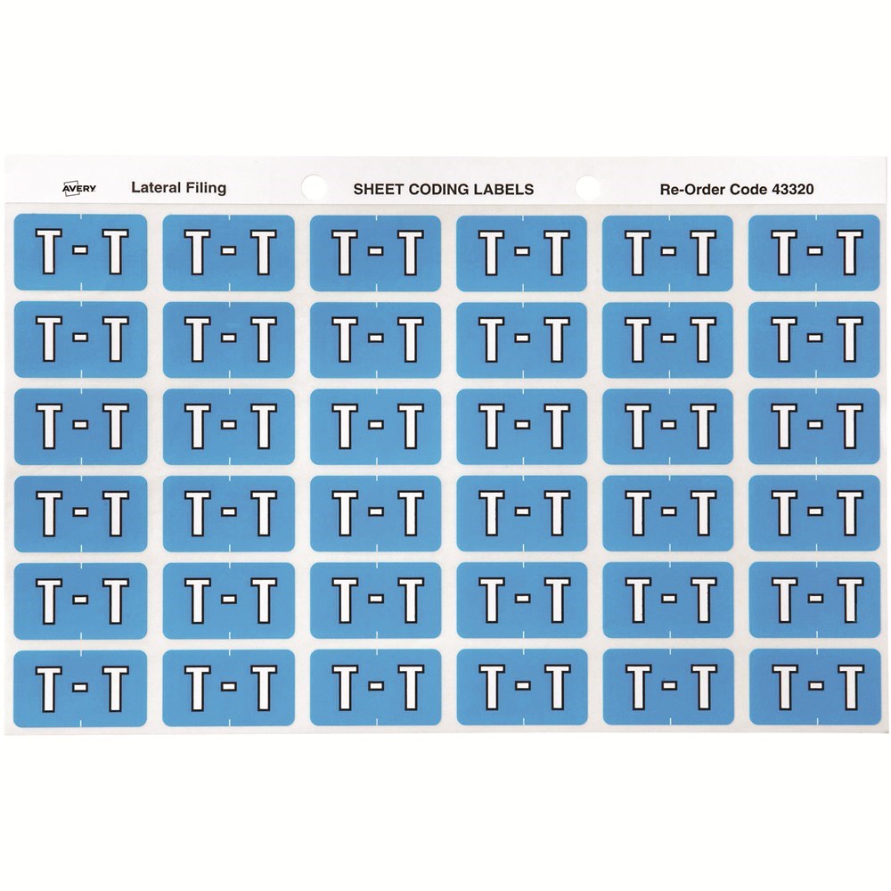 Avery Alphabet Coding Label T Side Tab 25x38mm Blue Pack Of 180