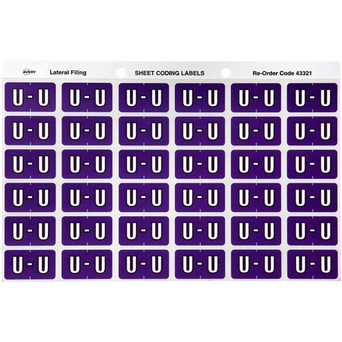 Avery Alphabet Coding Label U Side Tab 25x38mm Purple Pack Of 180
