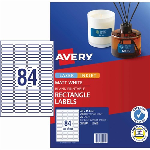 Avery Blank Printable Labels L7656 46 x 11.11mm Rectangle Matte White 84UP 2100 Labels