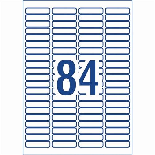 • Size: 46 x 11.11mm 2100 labels, 25 sheets. 84 labels per sheet (84UP).