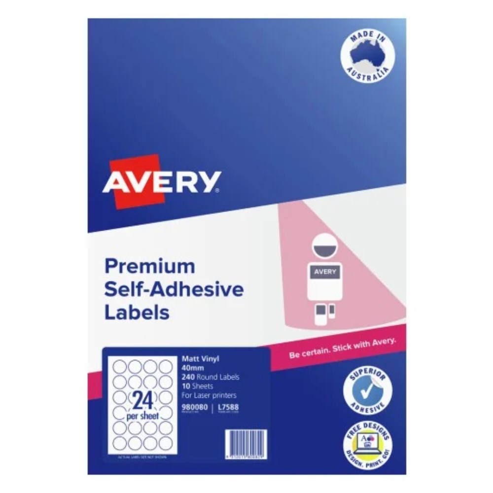 Avery Durable Blank Printable Labels L7588 40mm Round Matte White 24UP 240 Labels