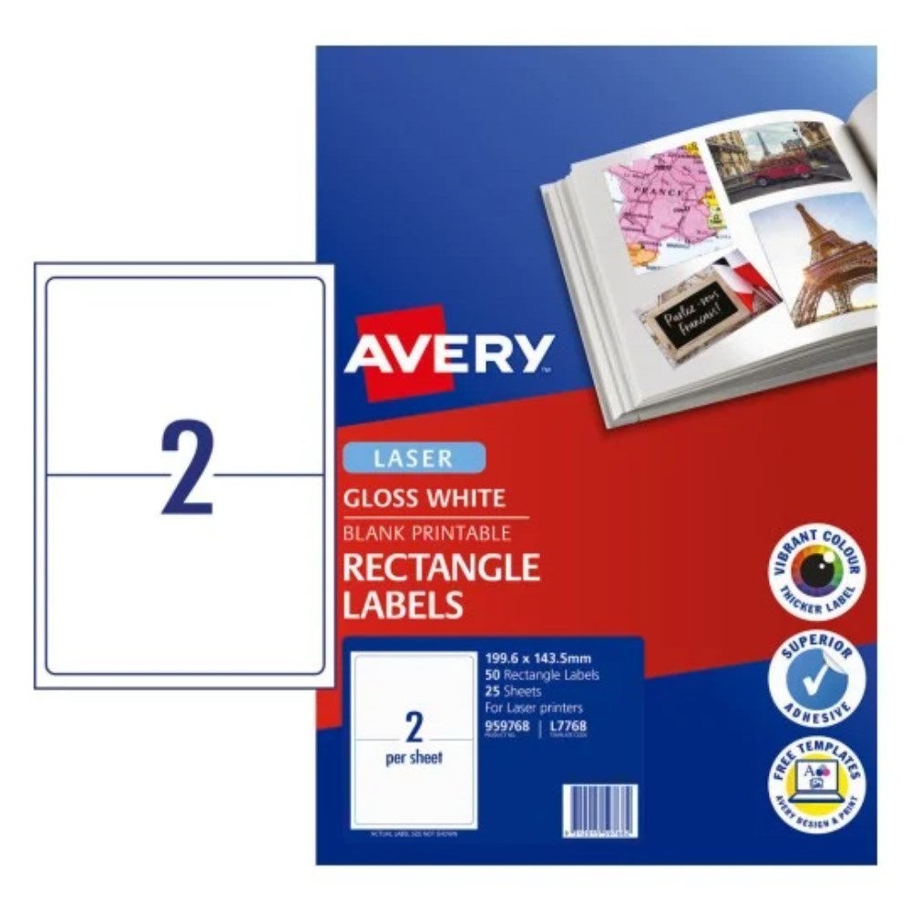 Avery Printable Labels L7768 199.6x143.5mm Rectangle Photo Gloss White 2UP 50 Labels