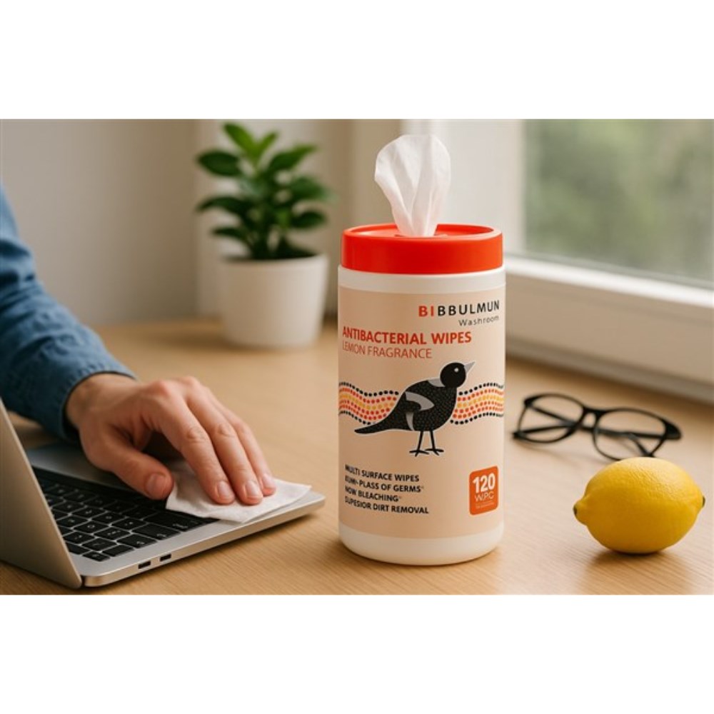 • Bibbulmun Washroom Antibacterial Wipes Lemon Tub Of 120 Wipes