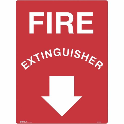 Brady Fire Sign Fire Extinguisher With Arrow 450W x 600mmH Metal White/Red