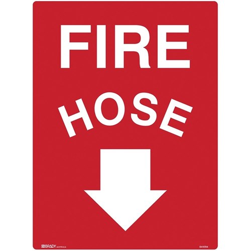 Brady Fire Sign Fire Hose With Arrow Down 450W x 600mmH Polypropylene White/Red
