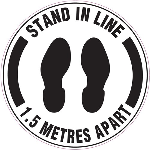• Wording: Stand In Line 1.5 Metres Apart (with footprint picto).