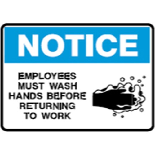• Wording: Notice Sign Wash Hands Before Returning To Work.