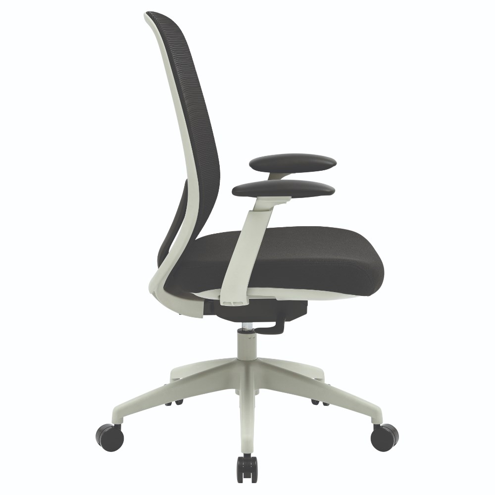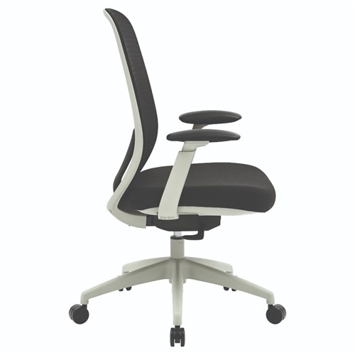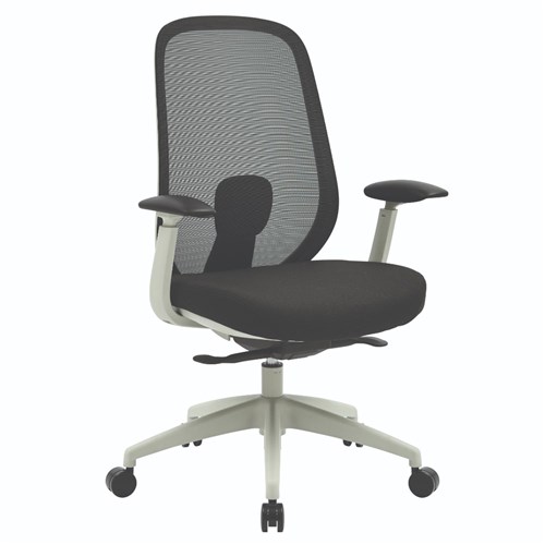 Buro Force High Back Office Chair + Arms Light Grey Frame Black Fabric Seat Mesh Back