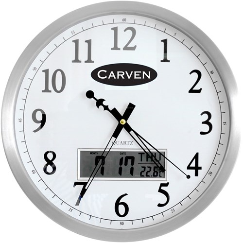 Carven Wall Clock 35cm Diameter With LCD Date Aluminium Frame