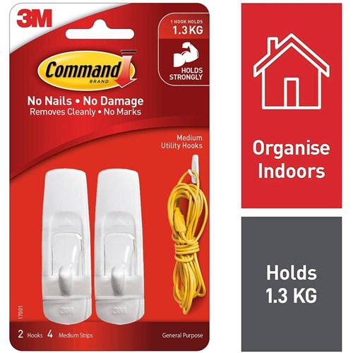 Command General Purpose Hooks 17001 Medium White Pack of 2