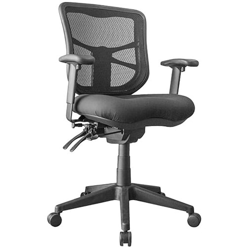 DAM Low Back 4 Lever Multi Shift Chair With Arms Mesh Back Black Fabric Seat