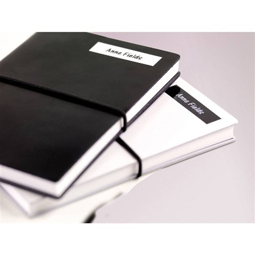 • The labels produced have black text on a white label.