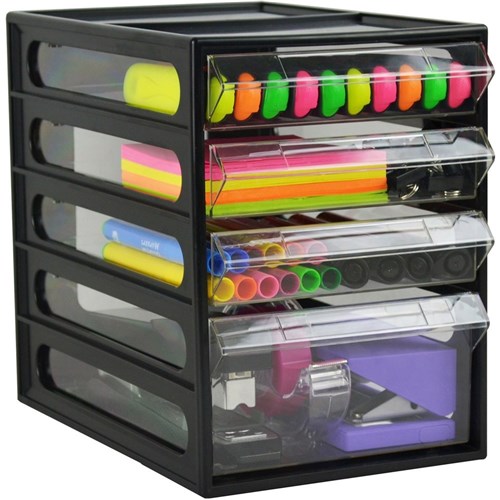 Italplast 4 Drawer Office Organiser Cabinet 255L x 165W x 230mmH Black