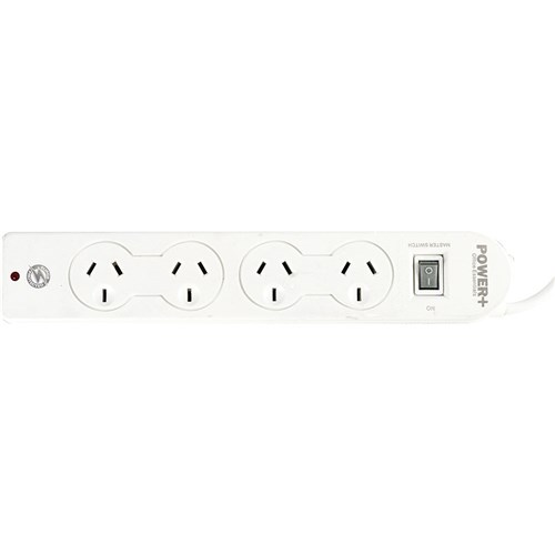 Italplast Power+ 4 Outlet Powerboard Master Switch Surge And Overload Protection White