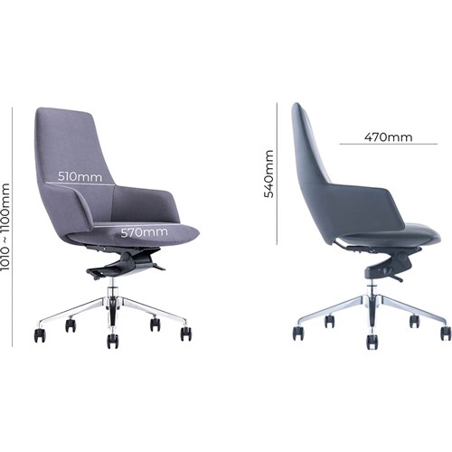 • Chair Dimension: Seat Width 570mm, Seat Depth 470mm, Back Height: 540mm, Overall Height 1010 - 11000mm.