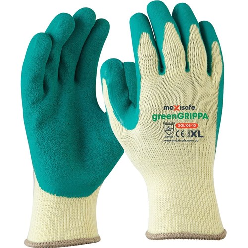 Maxisafe greenGRIPPA Gloves Latex Dipped Palm And Knitted Poly Cotton Large Green