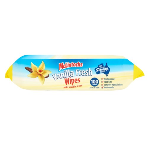 • McLintocks Vanilla Fresh Anti-Bacterial Multi Purpose Cleaning Wipes Pack Of 100
