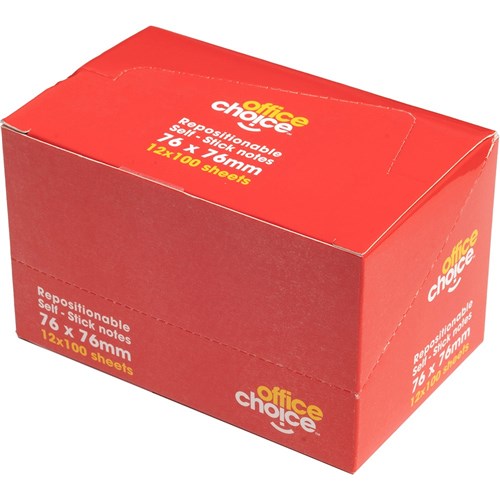 Office Choice Repositionable Sticky Notes 100 Sheets Yellow 76 x 76mm Pack of 12