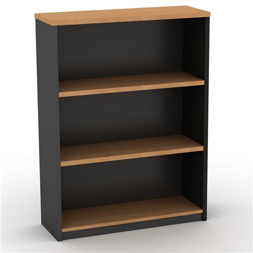 OM Bookcase 900W x 320D x 1200mmH 2 Shelf Beech And Charcoal