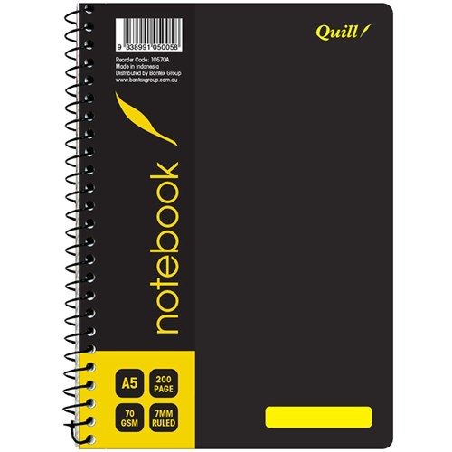 Quill Notebook A5 7mm Ruled 70gsm 200 Pages Black