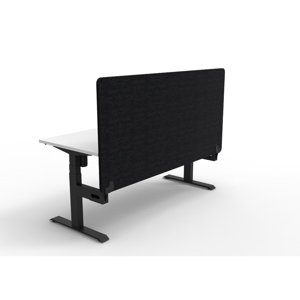 • Electric height adjustable single sided workstation with Natural White top and Black Satin frame, Black Eco screen.