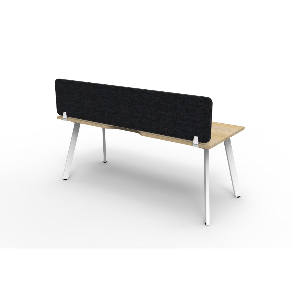 • Natural Oak worksurface with rigid edging and 410mmW x 50mmD scallop cable access. White Satin powder coat frame. Eco screen.