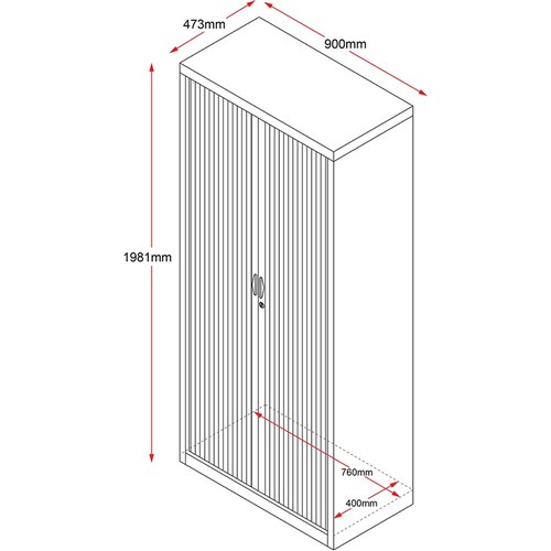 Rapidline Go Tambour Door Cupboard No Shelves Included 900W x 473D x 1981mmH White