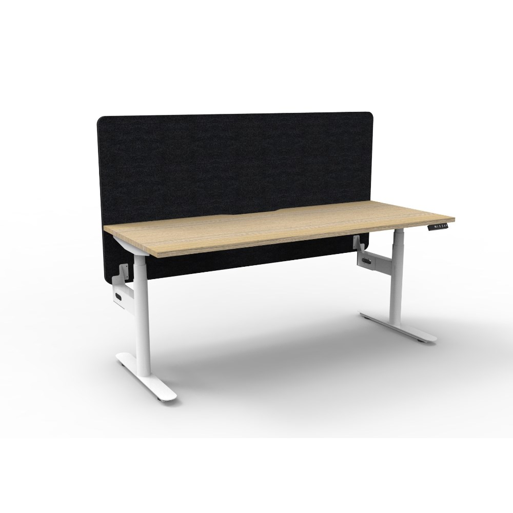 Rapidline Halo+ Single Sided Workstation + Black Eco Screen 1500Wx750Dx620-1270mmH Oak/Wht