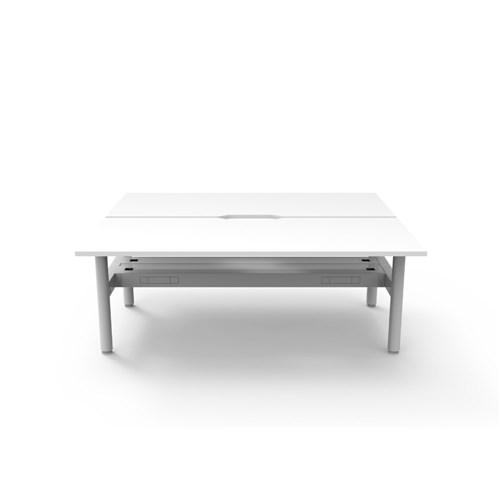 Rapidline Halo Static Back To Back Workstation + Cable Tray 2 Person 1800Wx730mmH Wht/Wht