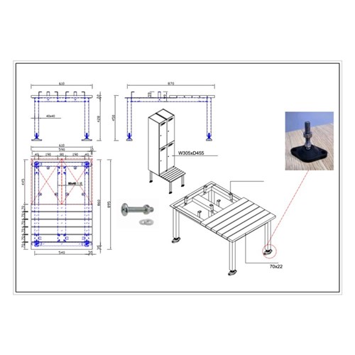 • Allows the user to sit in front of the locker to change whilst allowing for cleaning underneath the unit.