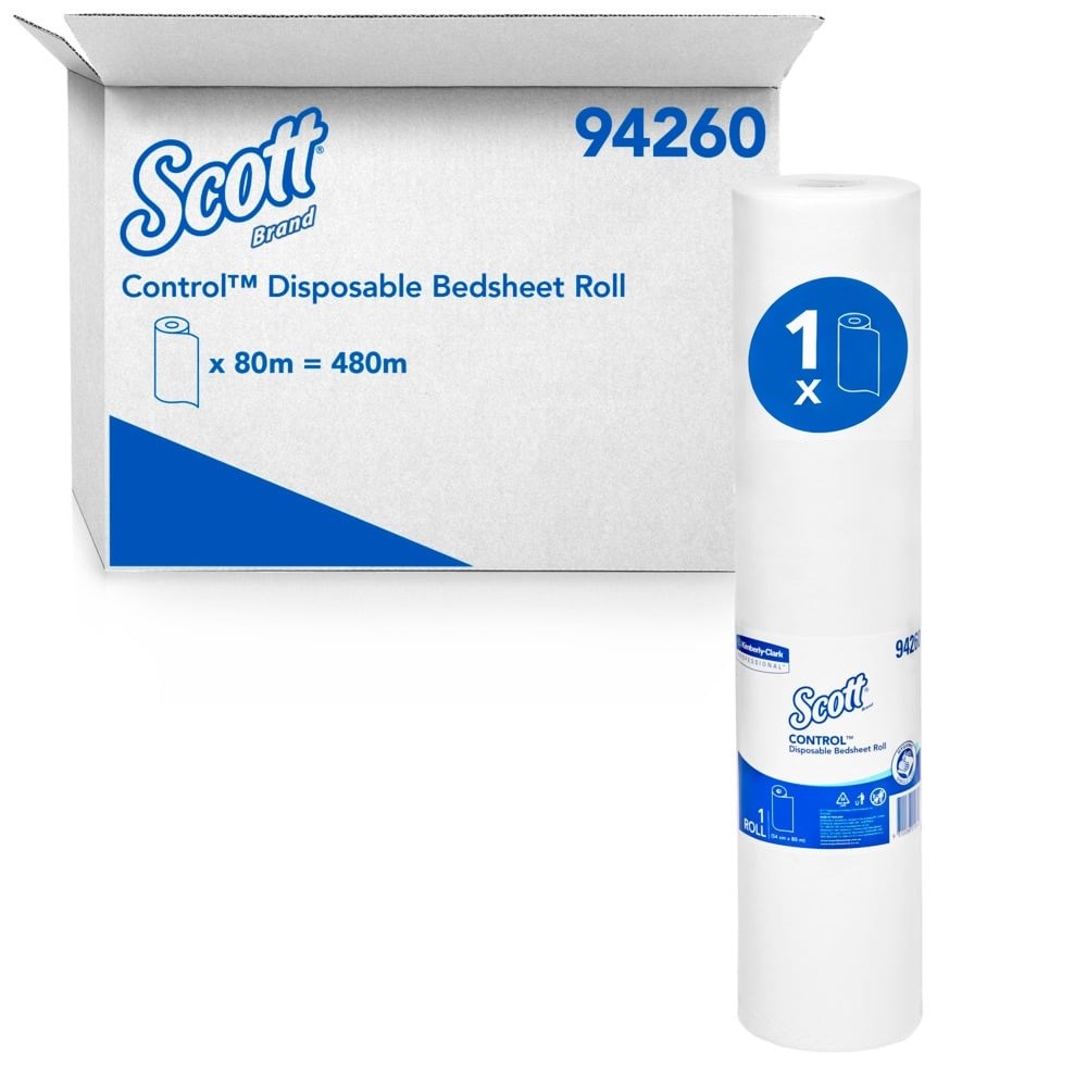 • One case of SCOTT Control Disposable Bedsheet Roll contains 6 rolls, each roll measures 80m length x 54cm wide