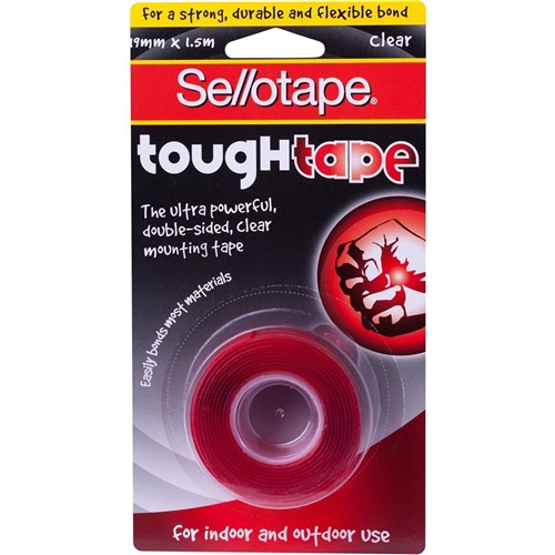 Sellotape Tough Tape Mounting 19mmx1.5m Strip Heavy Duty Clear
