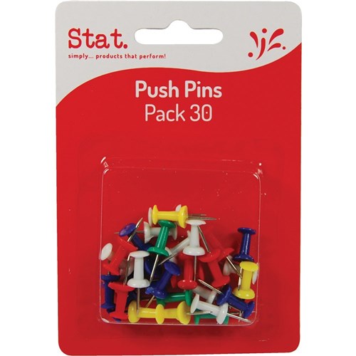 Stat Push Pins Pack of 30 Assorted Colours