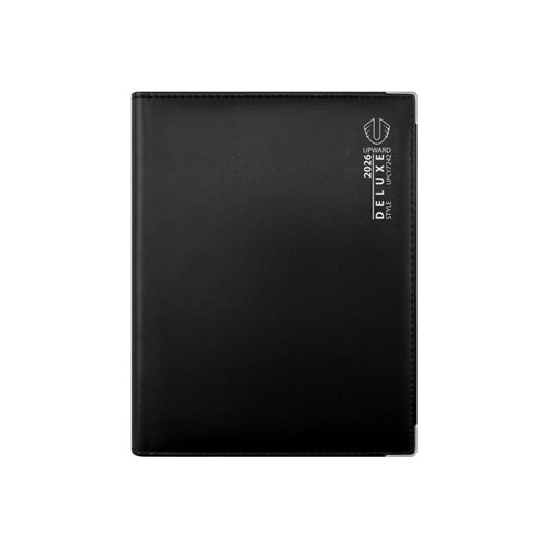 • Double wire binding. Lay flat opening. Ribbon marker. Tabs. Translucent pocket.