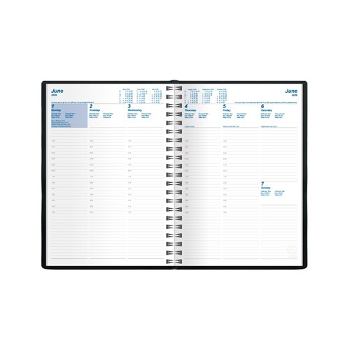 • Featuring a padded, phthalate free, PVC cover, pockets for storing business cards and wire-o binding to allow the diary to lie completely flat when open.