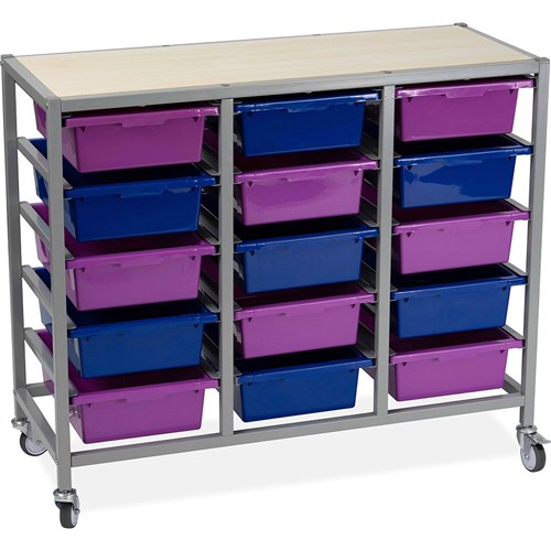 Visionchart Creative Kids Mobile Storage Trolley Only 1100Wx440Dx920mmH 15 Bay Grey